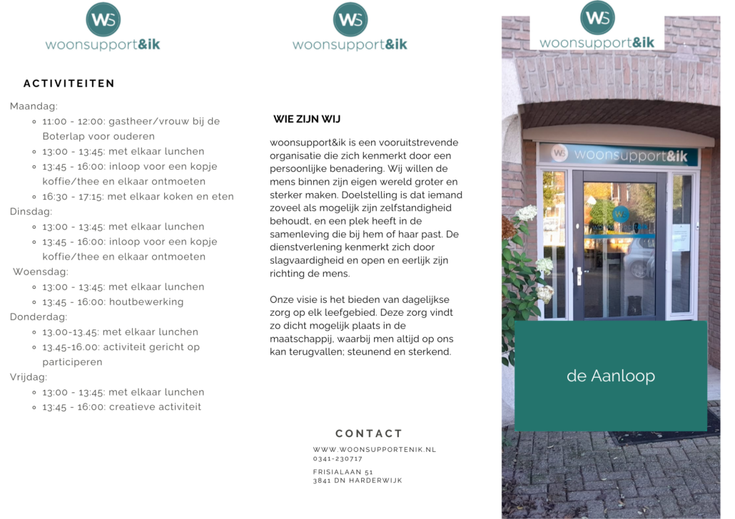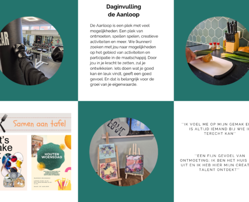 woonsupport&ik biedt in Harderwijk zinvolle tijdsbesteding. Hier komen (jong)volwassenen om te leren werken aan hun mogelijkheden en vaardigheden op het gebied van activiteiten. De zinvolle tijdsbesteding wordt gegeven door professionele begeleider(s) met kennis van de complexe hulpvraag en daarbij horende trainingsprogramma’s. We houden natuurlijk rekening met jouw mogelijkheden en interesses.